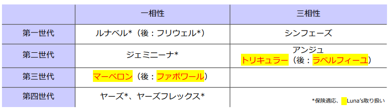 低用量ピルは、含まれるプロゲステロンの種類によって、四世代(種類)に分けられます。